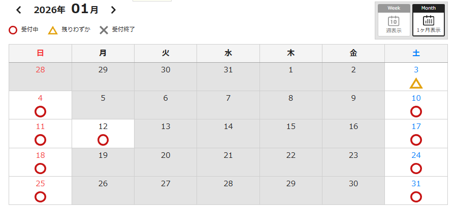 予約カレンダーが『△』や『×』になっていても当日受付が可能です。