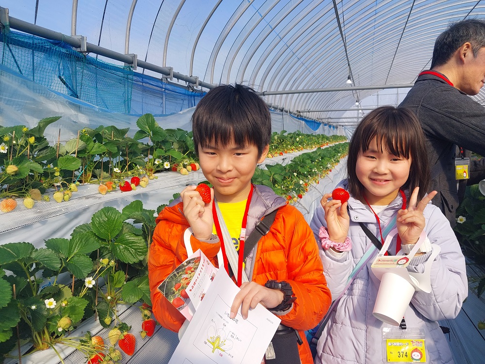 【いちごに関する講話】【いちご狩り体験】【昼食会】を通して、”地産地消を体験”いただきました。