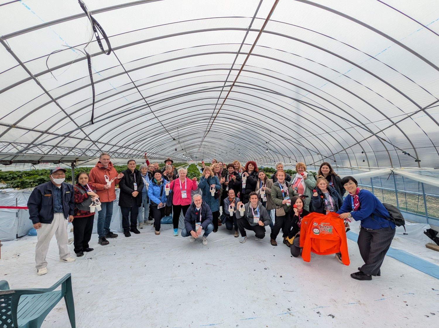 当日は、大型バス3台の103名様にご来園いただき、”イチゴ狩り”を体験いただきました。