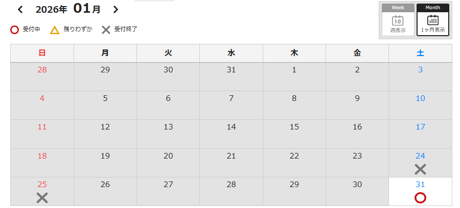 予約カレンダーが『△』や『×』になっていても当日受付が可能です。