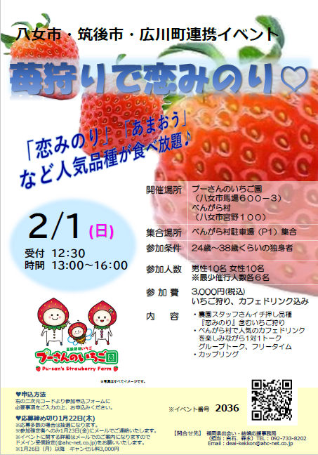 八女市・筑後市・広川町連携イベント『いちご狩りで恋みのり』開催