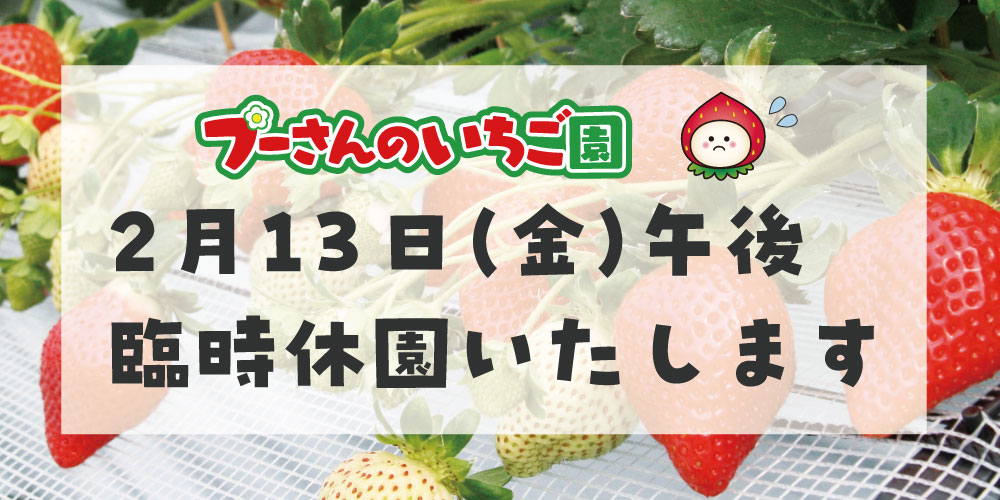 2/13(金)PM臨時休園のお知らせ